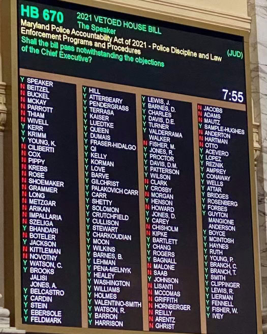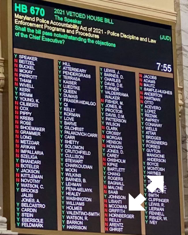 In 2021, Delegate Jackson voted to override Governor Hogan’s Veto of HB0670, stripping our brave Police officers of their protections which has since decimated Maryland’s retention and recruiting of Law Enforcement Officers. Ironically, FOP Lodge 4 President Dave Folderauer endorsed Carl Jackson for Delegate in the 2022 election.